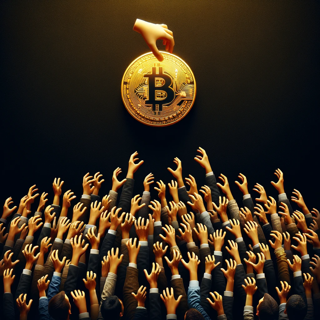 dall-e 코인을 잡으려는 많은 손들을 그려줘